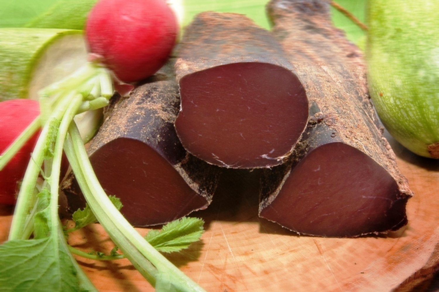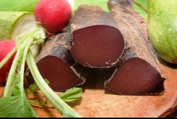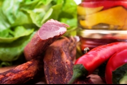 CARNATI SUBTIRI DIN CARNE DE VANAT. Este un produs preparat din carne de vanat, afumat traditional la temperaturi joase si condimentat delicat cu piper negru, boia iute, chimen si usturoi. Recomandam servirea acestui tip de carnati cu cas si pastrama afumata. Acest preparat confera o aroma excelenta mancarurilor calde, cum ar fi iahnia de fasole sau varza calita.